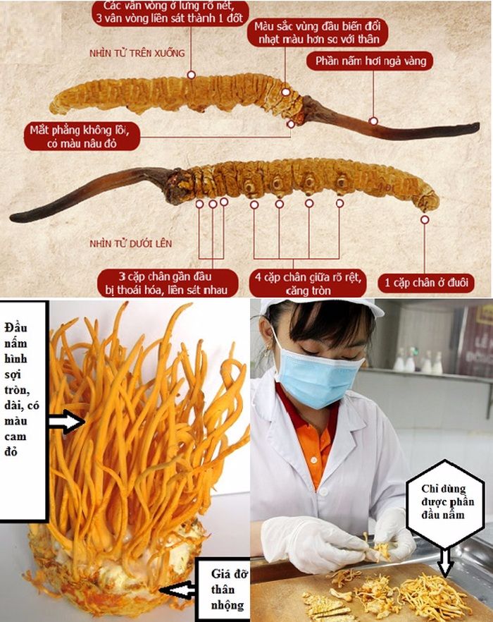 Đông trùng hạ thảo tự nhiên và nhân tạo khác biệt về đặc điểm hình dạng